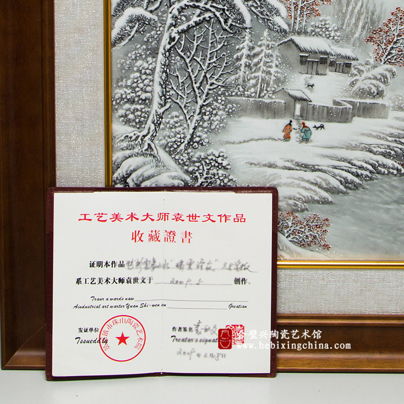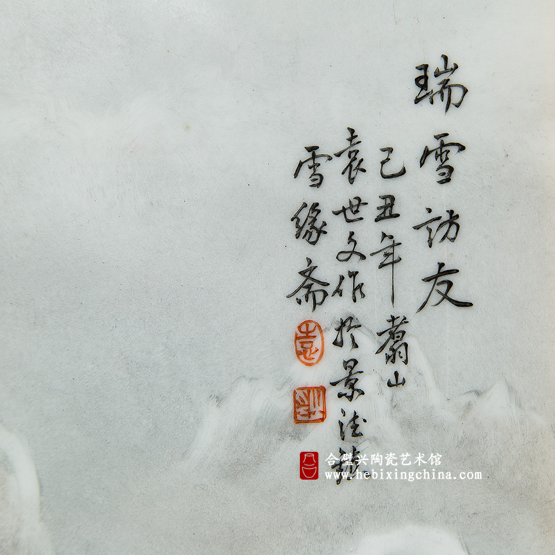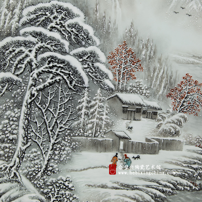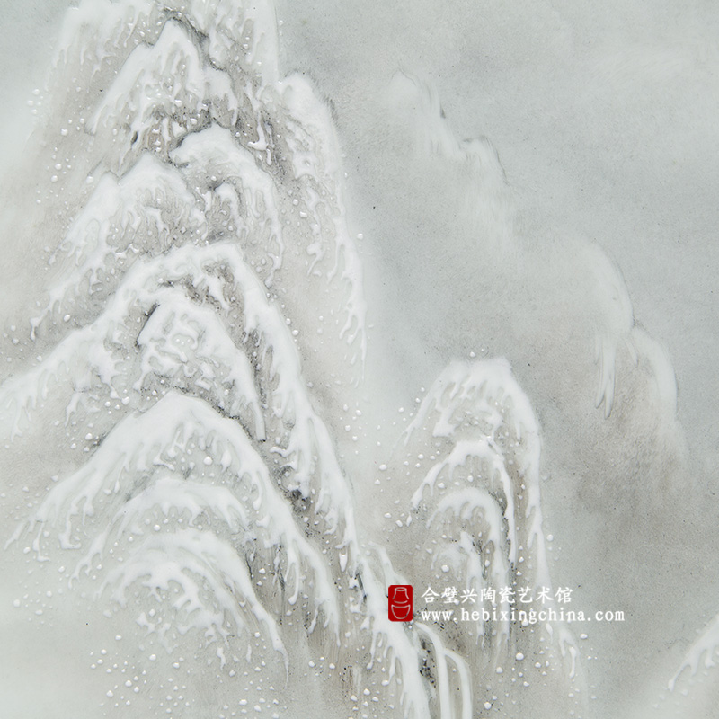 袁世文老师将传统水墨山水的笔法,带入到瓷板画的创作中,布局精巧,动静皆妙。