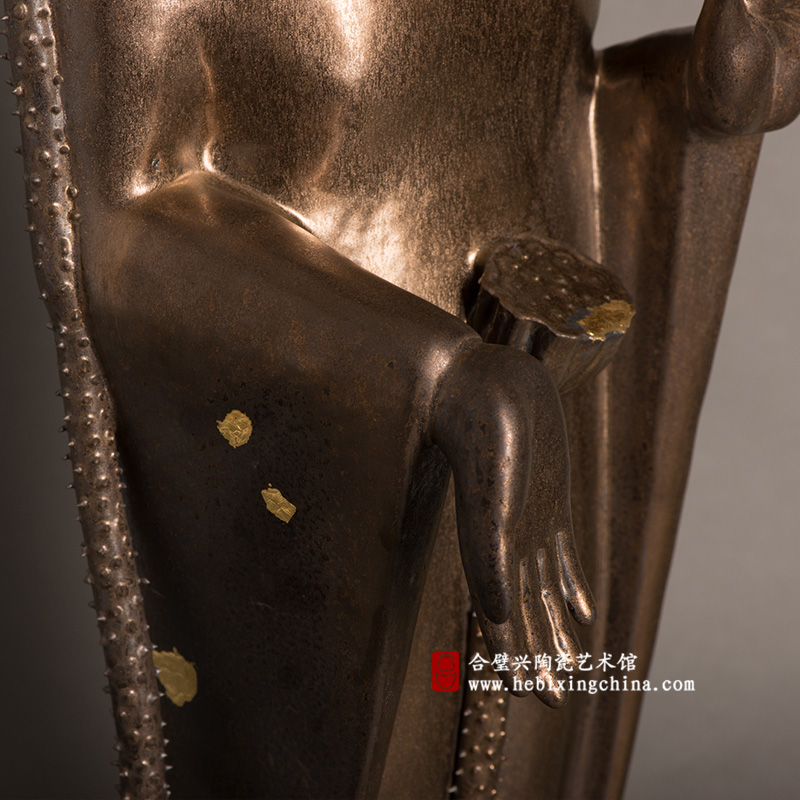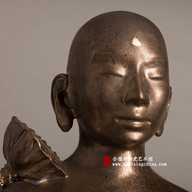 细腻的铜釉为作品镀上了一层隐隐的宝光,让它彷如在寺庙中静立了千年的佛像,肃穆而庄严,看尽人世繁华。