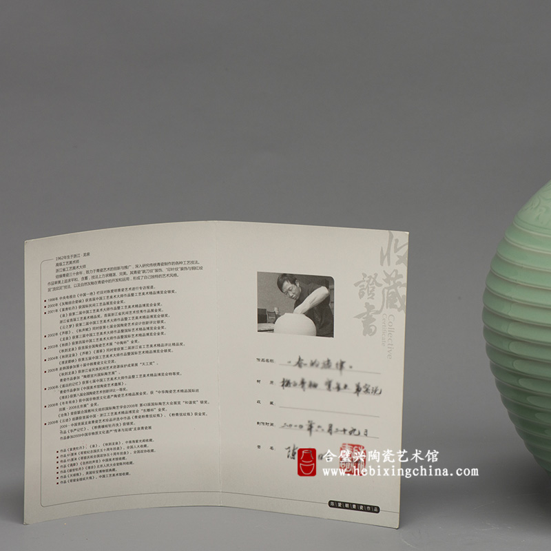 2.合璧兴陶瓷艺术馆是实体店,作售作品均为全国大师直接提供,让顾客享受最大折扣的优惠。合璧兴承诺:保真、求精、价实。