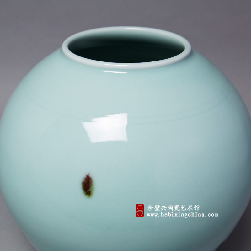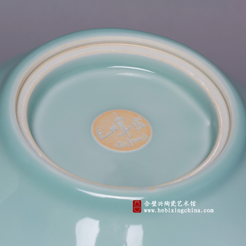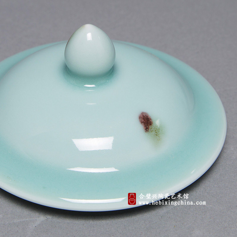 罐盖边沿和钮下的两处积釉清润细腻分外可人,在深浅变化中真切的展现出青瓷如冰似玉的优美质感。