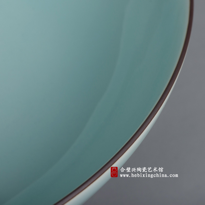 口沿处的紫金土是大碗上唯一的装饰,细细的紫色勾勒出规整圆润的口沿,碧青与深紫相应成趣,简约中见素雅。