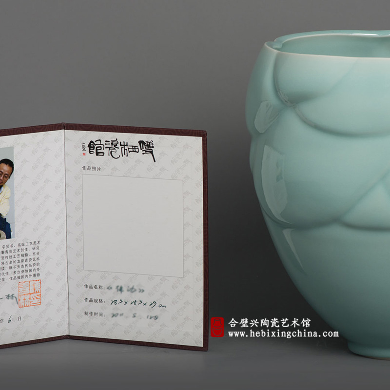 2012年 作品《粉青盖罐》在第四届中华国际旅游商品博览会上获特别荣誉奖;