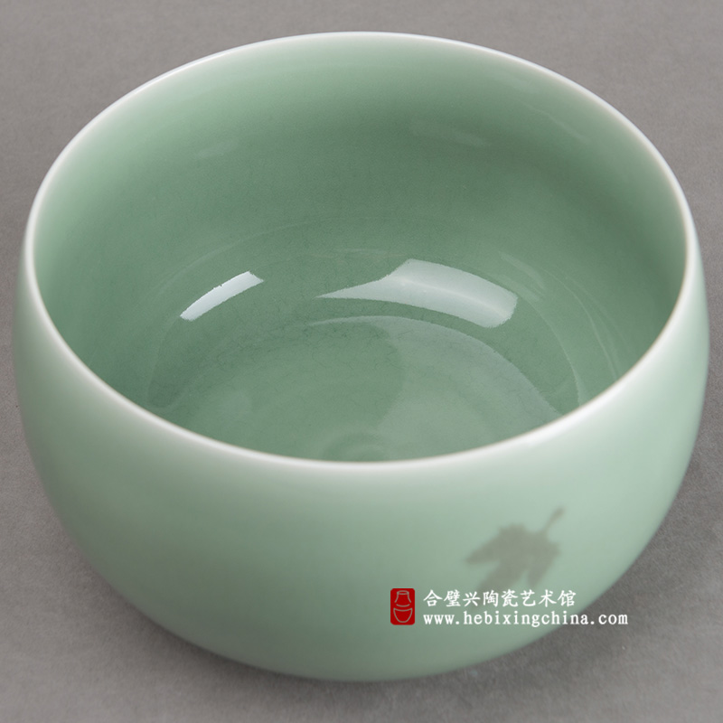 毛正聪老师潜心研究的多次施釉技法完美的再现了古人口中青瓷“似玉非玉”的优美质感,纯正的梅子青釉色让我们能从中品味出几分千年前宋人的喜悦。