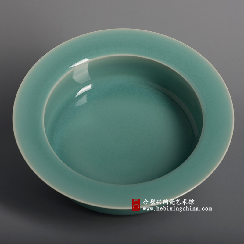 周华把青铜文化与青瓷文化连接在一起,为作品铸就了一缕文化的精魂。于是,我们在这件折沿洗中才能读出不一样的精气神。