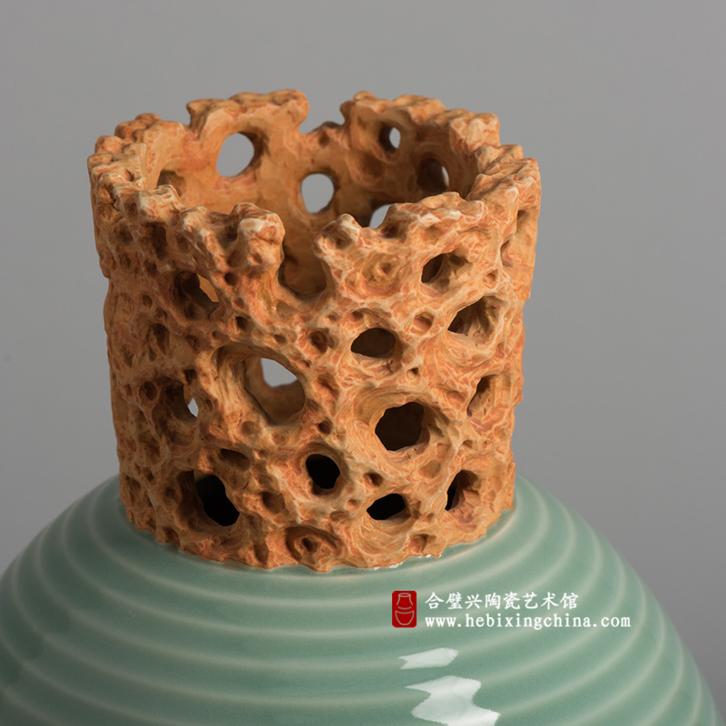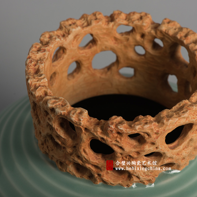 王传斌老师用艺术家般的浪漫和独树一帜的装饰手法在青瓷创作中融入了雕塑的意象,把错落有致的一组小品化作了太湖上最美妙的一幅画、一首诗,久久萦绕在我们的眼中,心上。