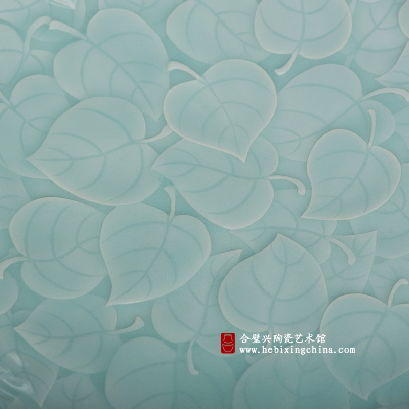 清透细腻的粉青釉色仿佛是一层薄雾,将堆叠的叶片轻轻笼罩,当第一缕阳光拨开了薄雾投在叶片上。