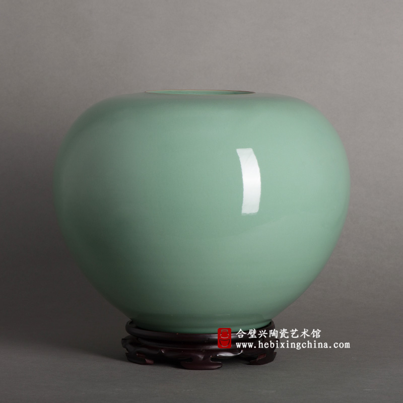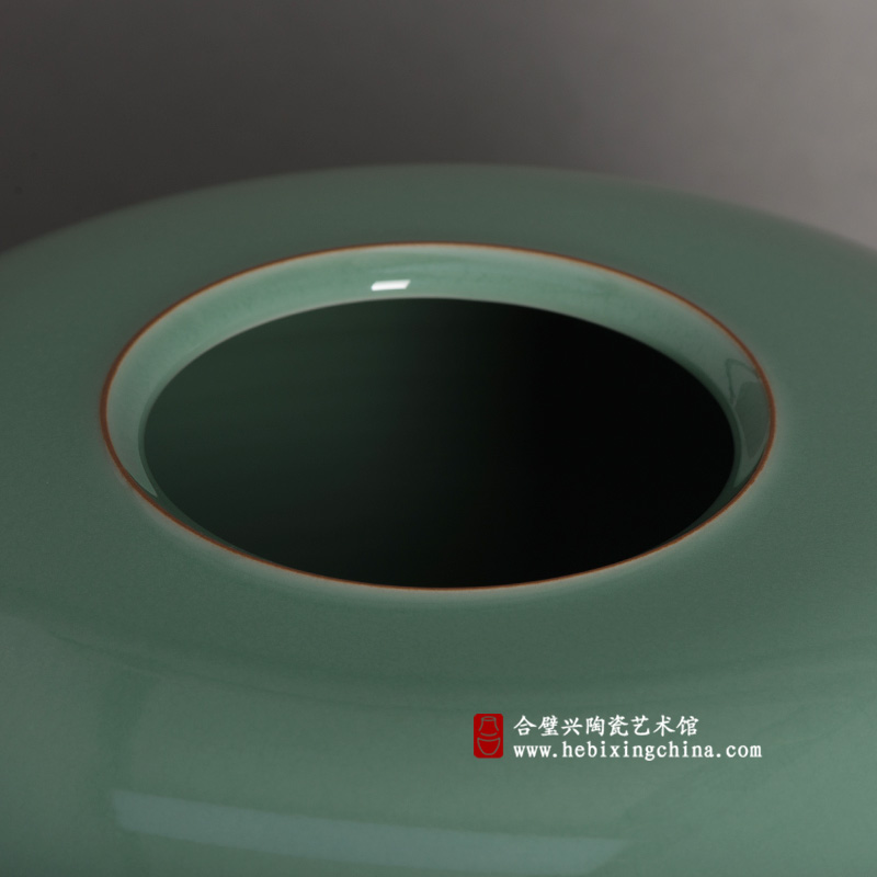 陈爱明老师深谙“简其形而用其色”的精髓,以极简的造型为釉色的表达创造巨大的空间,宽阔平整的曲面把梅子青釉色与质的美感发挥到了极致,用极简的纯美引发我们心灵深处的慨叹。