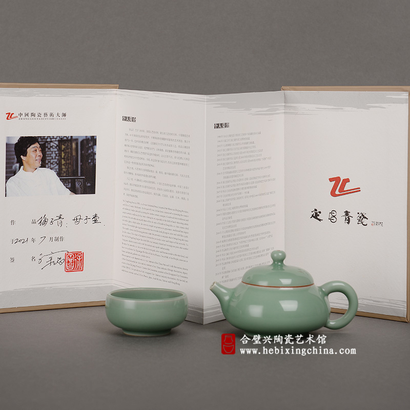 徐定昌1973年始从艺于龙泉上垟瓷厂,1996年建立龙泉市振昌瓷厂,40多年来孜孜追求青瓷艺术,不断吸聚传统精髓和探索现代艺术理念,集古今优异为一体,艺术创作精益求精,尤其擅长于全手工拉坯成型工艺。作品以薄胎厚釉的南宋官窑风格为主打,造型简洁大气、古朴典雅。多层施釉使器物釉色丰满,温润如玉。精湛的修坯工艺更使作品显得玲珑乖巧,令人百赏不厌。