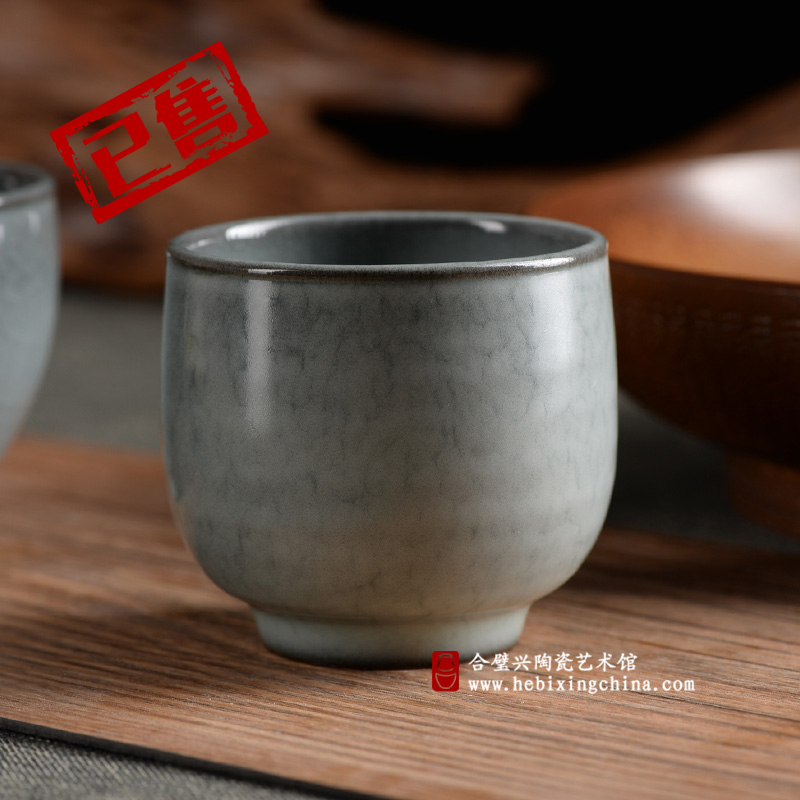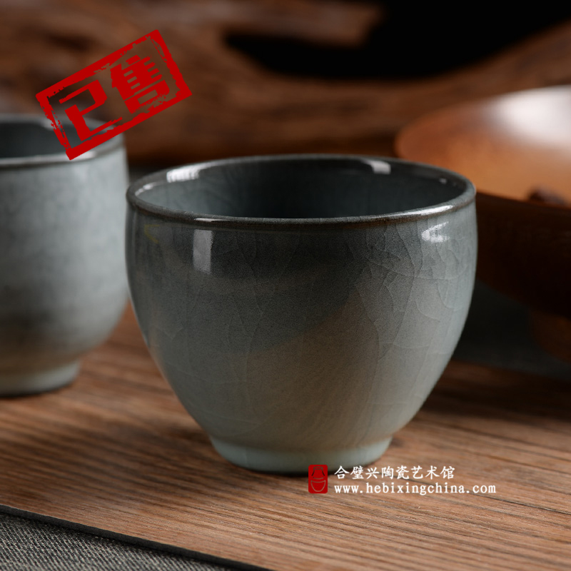 他的作品干净而内敛。在作品釉色处理上,他喜欢将青釉与灰釉混搭,这有别于传统龙泉青瓷所呈现出的单色釉效果。梅子青釉,温润莹澈,似水;灰釉在色泽上呈现出土黄色,质朴沉稳,如土。一青一黄,一水一土,巧妙布局,给人带来视觉上的冲击感,也带来了一种源自大自然的感触。