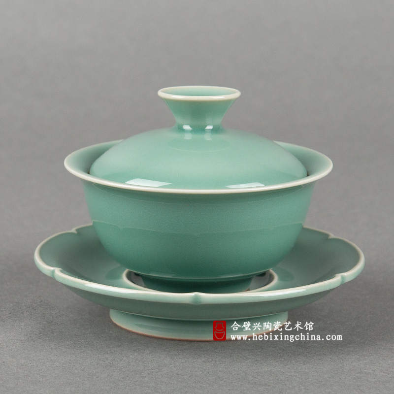 《花口梅子青盖碗》