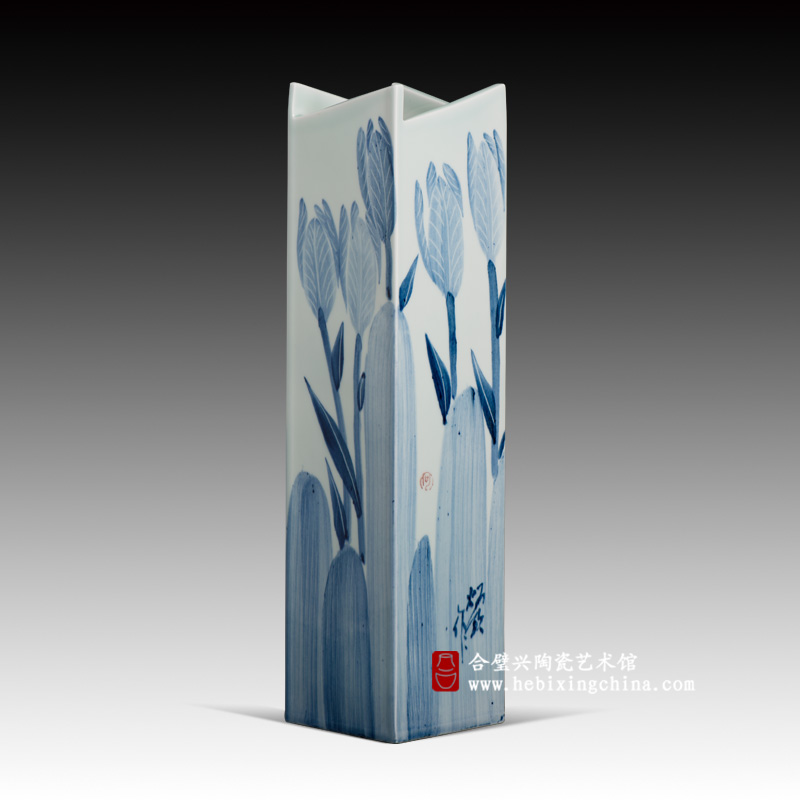 何教授的陶瓷艺术作品给人最为直观的印象是造型简约、大方,装饰典雅、清秀。作品多取材自然界中的小鸟、小花和小草,刻意表现自然界的谐和、温馨的情调和生命的活力;作品采用图案化的装饰形式,利用图案中夸张、变形与变异等手法,给人以严谨、隽永、精致之感;作品多用淡雅的低纯度色调,给人一种清新,雅致、柔和的色彩美感。