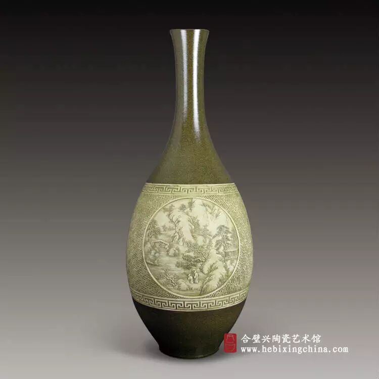 孙清华教授作品 《开光堆雕古典山水》胆瓶