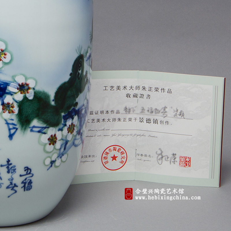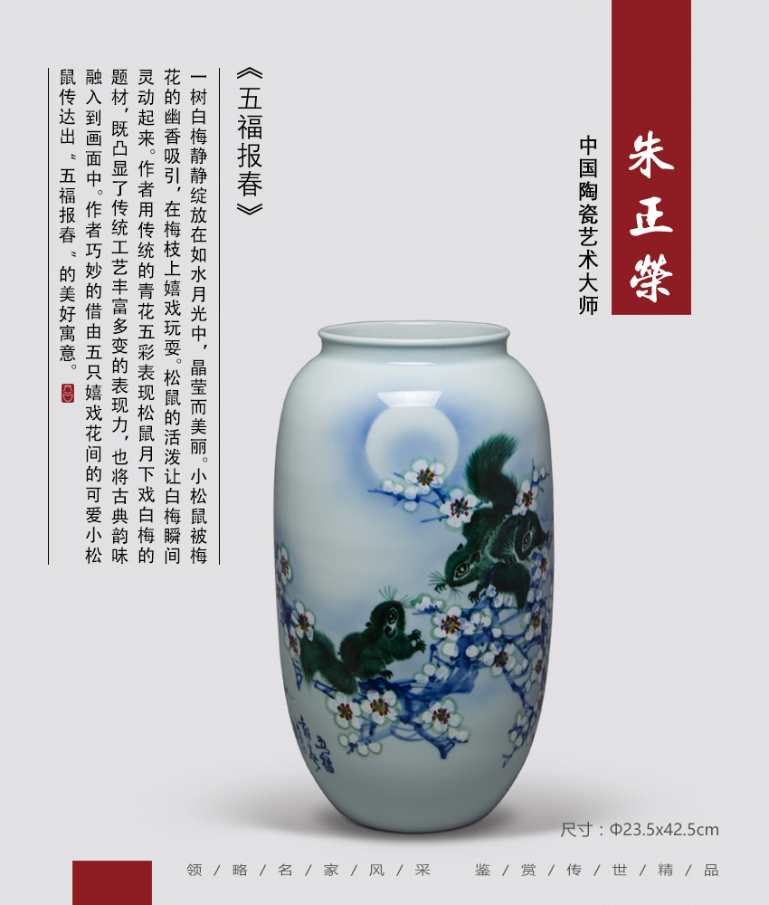 朱正荣,毕业于景德镇陶瓷学院美术系,现在景德镇市陶瓷研究所从事陶瓷艺术创作,被景德镇陶瓷界誉为“松鼠大王”。他的作品在国际、国内工艺美术展评中,多次获得大奖。