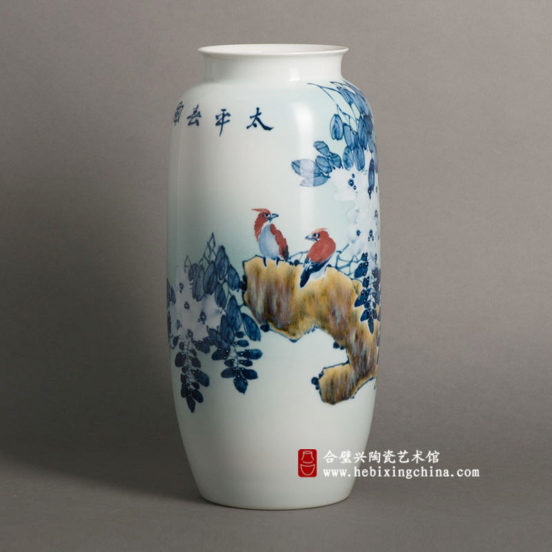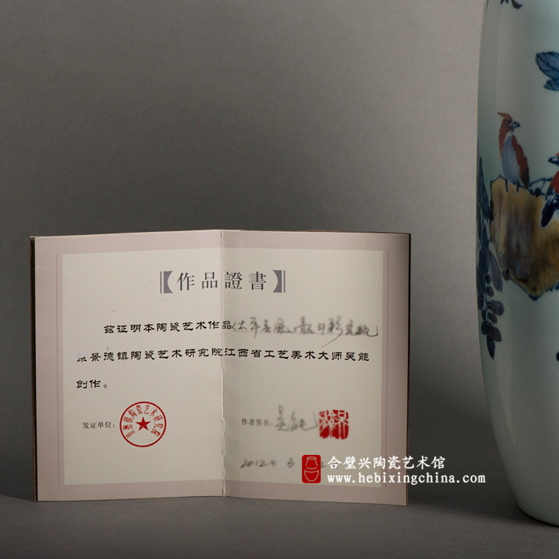 作品构图精巧,不管从那个角度望去都是一幅平静祥和的春风图,画面格调清新,设色雅致,立意深远又灵动活泼,既有瓷画的特色,又有国画的韵味,是一件难得的佳品。