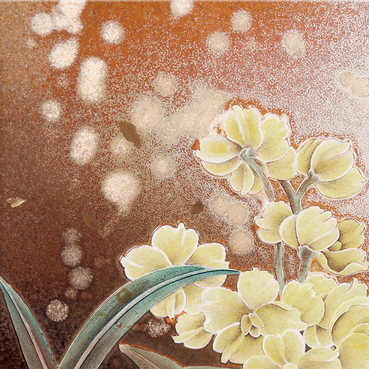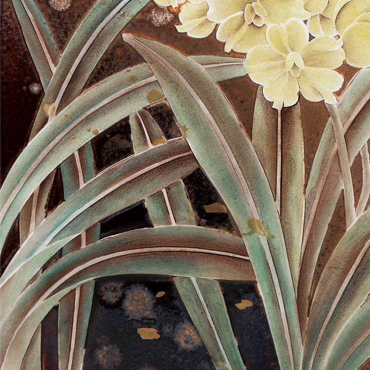 该作品采用陶瓷综合装饰技法表现花儿朵朵,丰富变化的色釉表现与清新淡雅的色调相结合,多种色彩的搭配营造出清新的姿态,似阵阵花香迎风而来。