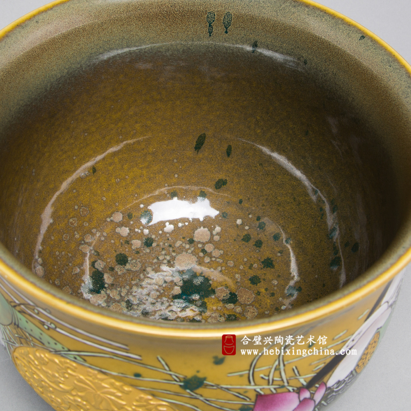优美的画面不仅让人感叹岁月的静好、金色的年华。作品三面有圆形开窗,窗中阳刻传统缠枝莲纹样,花纹线条流畅,灵动优美。