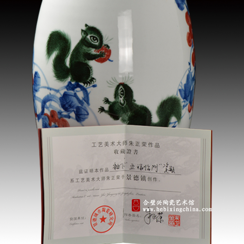 作品《松鼠》瓶和瓷板画两次被日本恩巴《中国近代美术馆》收藏;