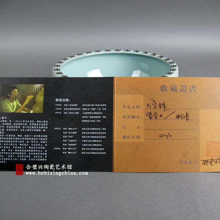 2.合璧兴陶瓷艺术馆是实体店,作售作品均为全国大师直接提供,让顾客享受最大折扣的优惠。合璧兴承诺:保真、求精、价实。