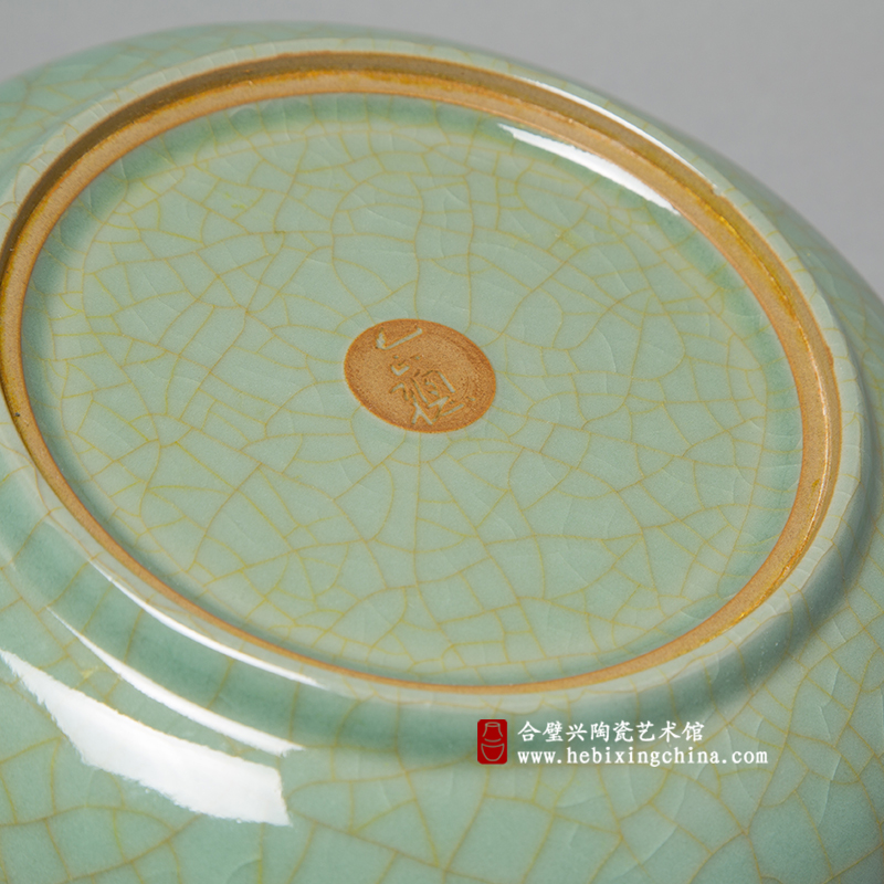 随机性极强的开片在这里仿若被人工驯服了一般在釉面上均匀而舒展的伸延,不着痕迹的融入在清润醇厚的釉色里,自然之美与手作之美交融在一处,到达一种“天然造化尽如人意”的玄妙境界,令观者陶醉其中,不由的用心体味作品中蕴含的美丽与真意。