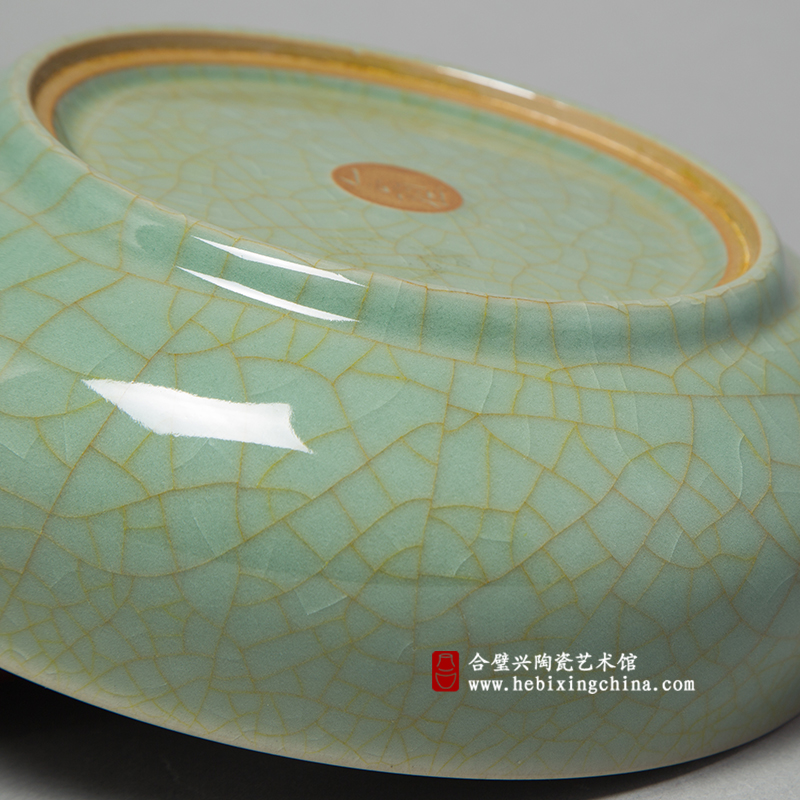 看似简单的线条却在每一个弧度里都蕴藏了舒展大方的朴素之美。金色的开片纹路在典雅的青色中蔓延开来,让青色变得更加醇厚而富有层次,同时也为作品注入了蓬勃萌动的生机。