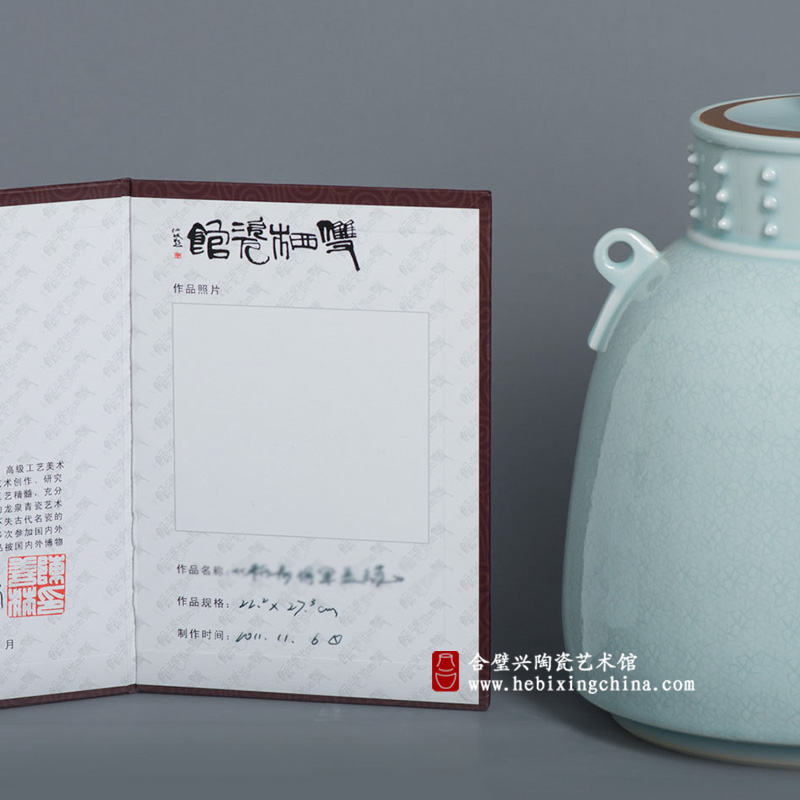 2012年 作品《粉青盖罐》在第四届中华国际旅游商品博览会上获特别荣誉奖;