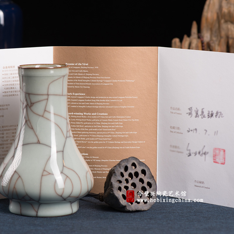 金逸瑞师从中国工艺美术大师徐朝兴先生。作品清新雅致,融传统艺术与现代技艺于一炉,具有较强的意识个性。器型浑朴大方,古拙中透露出生命的灵性;釉色温润如玉,深邃中包含着大千的哲理。深得中外专家、学者和收藏界人士的喜爱。
