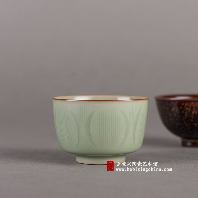 没有花哨的色彩也不要繁复的装饰,只用纯粹的釉色与寥寥的几刀刻痕,塑出一朵素色的莲花。在一派静谧安宁的青色中微微聚拢着花瓣,仿佛其中隐着一方澄明的禅境世界,有着安定人心的力量。