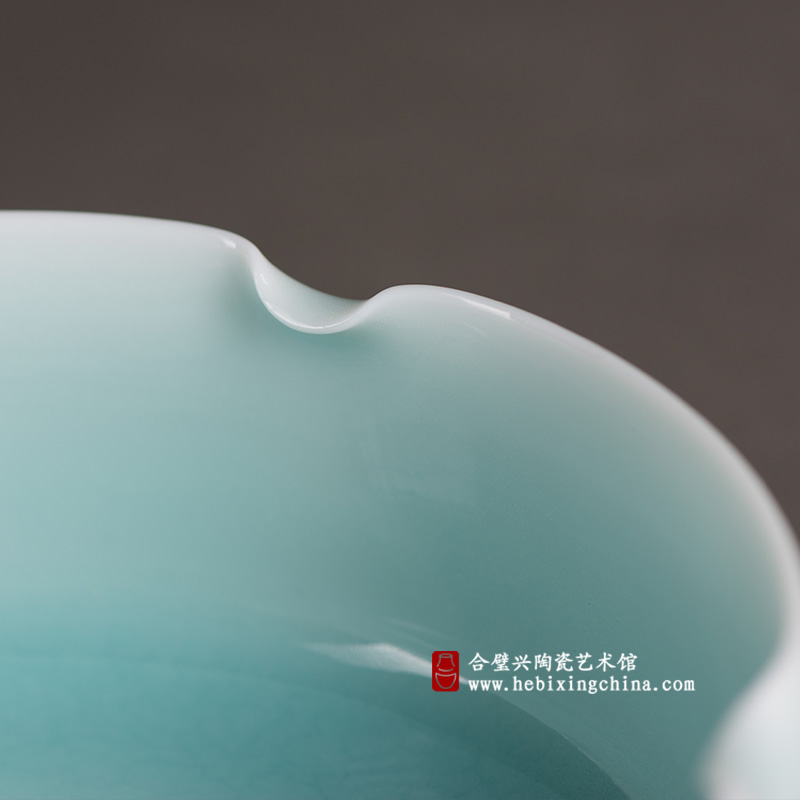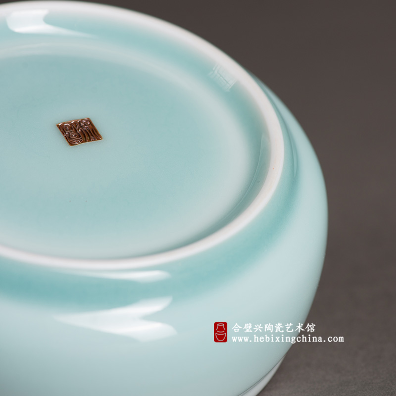 这件作品胎质莹白似雪,釉色皎洁如冰,胎与釉紧密契合浑然一体,宛若“无骨”,把青瓷“如冰似玉”的质感完美的呈现在我们面前。