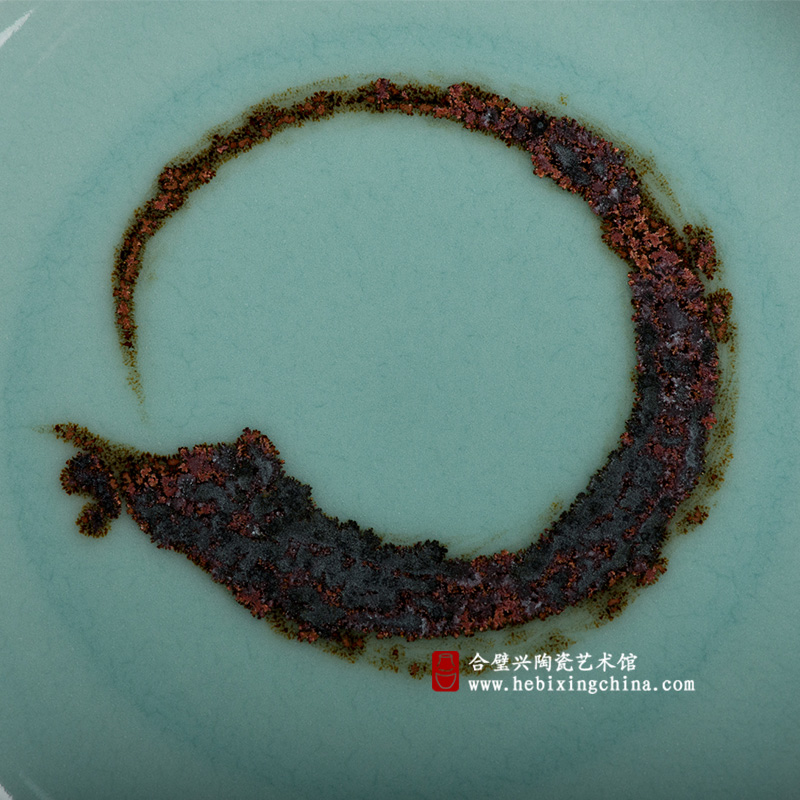 周华老师别具匠心的把身边极具自然气息的元素加入到他的青瓷创作中,以青瓷为纸,石泥为墨,用水墨写意的笔触在青瓷盘上描绘出一幅潇洒而神奇的《石头记》。
